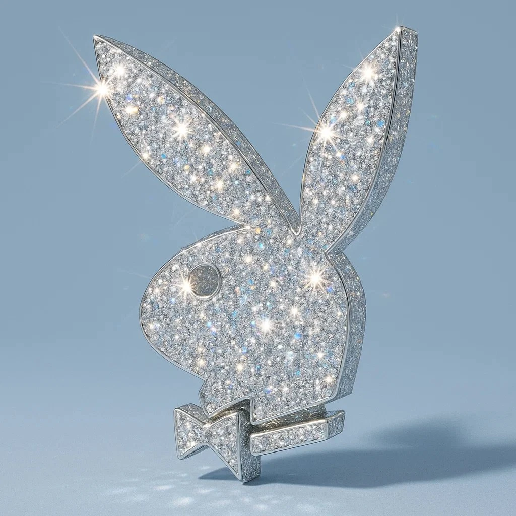 Recreate this image using the parameters of the JSON provided. { "style_name": "Diamond-Encrusted Glamour", "description": "Applies a hyper-realistic diamond-encrusted style to any object, logo, or shape. The surface of the subject is entirely covered with sparkling gemstones that reflect light with intense brilliance, creating a luxurious, eye-catching, and surreal look.", "surface_texture": { "material": "diamond-crystal", "coating": "fully encrusted with multi-faceted diamonds", "sparkle_intensity": "maximum", "reflection_type": "specular and highly refractive", "detail_density": "ultra-fine, micro-gem coverage with no gaps", "light_refraction": "strong rainbow dispersion through facets" }, "lighting": { "light_source": "hard directional light", "highlight_effects": "lens flares, sparkle flares on gem edges", "shadow_type": "soft-edged, low-opacity shadows for contrast", "specularity": "very high", "reflection_sources": "ambient and direct highlights across the gem facets" }, "background": { "type": "minimalist solid color", "color": "#B0C4DE", "texture": "smooth matte", "contrast_with_subject": "high contrast to enhance sparkle", "depth": "subtle shadow under the object for floating effect" }, "color_palette": { "primary": "transparent white (diamond base)", "secondary": "prismatic reflections (rainbow light dispersion)", "accent": "metallic shimmer on edges (optional: gold or silver undertones)" }, "camera": { "angle": "slight top-down perspective", "depth_of_field": "shallow (sharp focus on object, blurred background)", "lens_effects": ["macro focus", "sparkle highlights", "light bloom"] }, "style_keywords": [ "glamorous", "luxury", "crystal-covered", "bling", "hyper-detailed", "sparkling", "futuristic", "eye-catching", "surreal realism", "fashion-inspired" ], "applicability": { "usable_on": ["logos", "icons", "food items", "everyday objects", "fashion accessories", "typography"], "visual_requirements": ["well-defined silhouette", "clean shapes for gem placement"], "scalability": "best results on medium to large subjects for detailed sparkle" } }