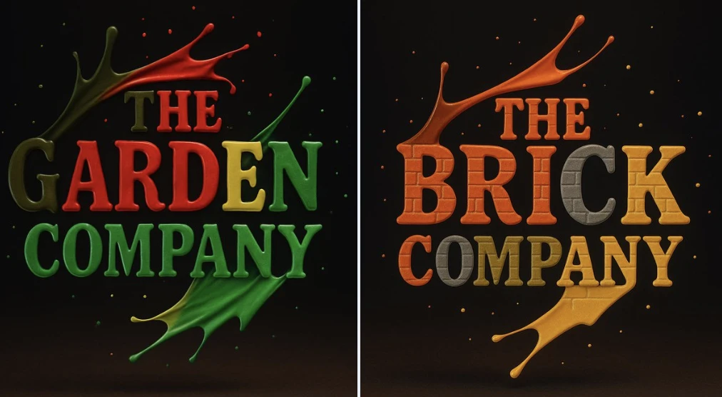 Create a photograph of a [BRAND] logo formed from four vibrant paint splashes: red, blue, green, and yellow, captured mid-motion. Each color flows dynamically across different parts of the logo, as if sculpted from liquid paint. Droplets are suspended in the air around it, enhancing the illusion of movement. Set against a dark background with soft, vivid lighting that accentuates the glossy texture and fluid motion Use appropriate colors for the logos.