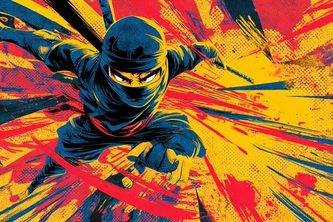 2D卡通插画,描绘了一位[主体]以[动态动作姿势]的中途运动,采用复古漫画风格绘制,轮廓粗犷,色彩饱和。具有戏剧性的运动条纹、夸张的透视、富有冲击力的面板构图和清晰的半色调纹理。旨在以复古超级英雄的风格呈现充满活力的视觉叙事。