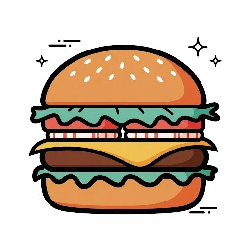 创建复古卡通风格的 [OBJECT] 插图。仅使用单色,不要使用渐变、涂抹、喷枪或模糊。所有阴影和高光都应由干净、独立的色块制成。用粗大的黑色线条勾勒出所有形状的轮廓。使用简化的调色板(如蓝绿色、珊瑚色、芥末色和白色)以获得复古感。添加小的闪光点缀或动感线条以增加魅力,但保持图标的明确焦点。将插图设置在纯白色背景上。最终结果必须清晰、干净且矢量友好,具有锐利的边缘,并且没有纹理或栅格效果。方形纵横比。